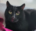 X-rays show that ink-black Elijah is missing two toes from his front left paw and one from his right, as well as having a stunted tail that is slightly bent. These physical abnormalities are most likely the result of inbreeding in a multi-cat home where unneutered cats were allowed to mate freely.