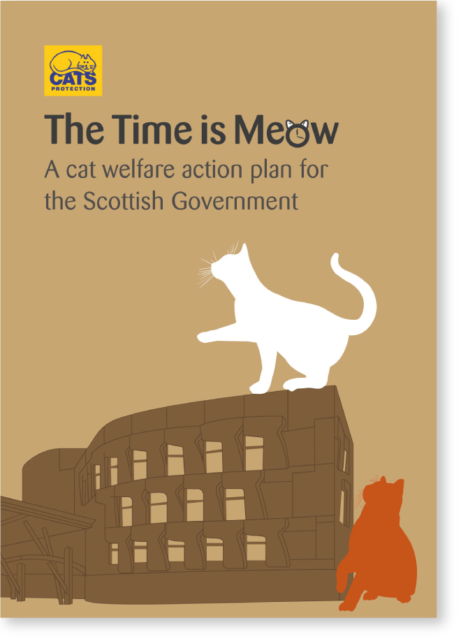 The Time is Meow: a cat welfare action plan for the Scottish Government outlines our top campaigning issues to improve cat welfare.